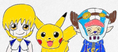 まずは本日、声優の大谷育江さんの 誕生日ですので、 ピカチュウとガッシュ、 チョッパーを書きました! チョッパーはエッグヘッド編の衣装にしましたね。 スマガルイラストではピカチュウとガッシュ、 去年の大谷育江さん誕生日分は チョッパーとガッシュと…